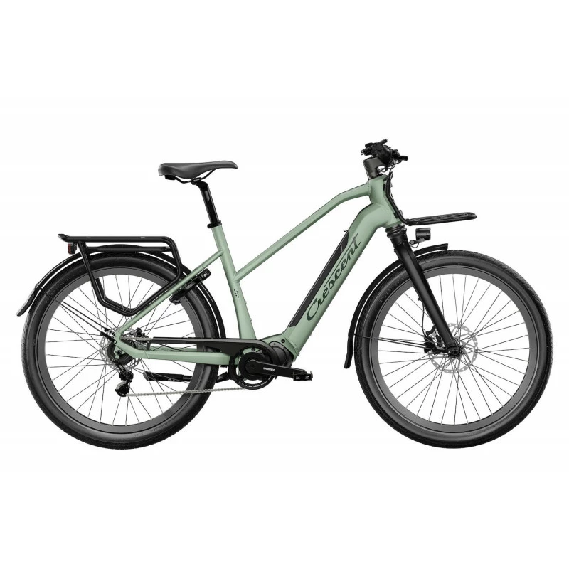 Denna SUV är en ”Kameleont” för den som söker en modern look med integrerad teknik med en kraftig konstruktion med möjlighet för personlig anpassning. Den kommer göra vardagen enklare, bekvämare och roligare. Den starka Shimano 6100-motorn med 65 nm vridmoment gör den till en perfekt pendlarhoj som dessutom trivs bra på grusvägar och enklare skogsstigar. Komforten är en av fördelarna med en SUV. Mjuka 60mm däck med punkteringsskydd samt en stel monochockgaffel med 35 mm dämpning upptill med dämpning ger minimala vibrationer från underlaget, att tänka på är att utnyttja däcktrycket för maximal effekt. Geometrin på denna cykel kombinerar avslappnad komfort och sportig look. Ett lite kortare avstånd mellan styre och sadel lyfter överkroppen och ger bra översikt över omgivningen, det ger en tryggare cykling i stadstrafik. Ergonomin i cykeln ligger i geometrin samt beröringspunkterna handtag och sadel. De är skapade för att avlasta tryck samt att ge en avlastning som framför allt behövs vid längre turer. Den ställbara styrstammen samt justerbara sadeln ser till att din anatomi synkar med storleken på cykeln. Denna cykel är förberedd för vardagslivets utmaningar och packning utöver det vanliga, fram och bakpakethållare med klicksystemet AVS ger många val. Pakethållaren bak har också integrerade fästen för sidomonterade väskor. Uppgradera med matchande förvaringslösningar att klicka på från Spectra Pronto. För att ge cykeln en extra nivå av säkerhet så är belysningen är alltid aktiverad och baklampan har integrerat bromsljus som varnar dina medcyklister samt trafiken runt dig. Reflexdäck samt reflex fram och bak ser till du är synlig från alla håll. SUV:en är utrustad med modern teknik snyggt integrerat i cykeln, det skyddar och ger cykeln en modern look. Shimanos femväxlade baknav, kraftiga hydrauliska bromsa säkrar att du hanterar ditt ekipage på ett enkelt, säkert och kontrollerat sätt. Det inbyggda batteriet på 417 Wh kan enkelt plockas ur ramen för laddning eller så laddas batteriet direkt i cykeln. Batteriets placering ger en dold, skyddad och låg placering som ger en bra stabilitet. Samma nyckel används för batteri- och det godkända ramlåset. Uppgradera med tillhörande plug-in lås för att fästa vid cykelstället. 3 månaders stöldskyddsförsäkring ingår. Elgot och Elska designas, utvecklas och byggs i Varberg på svenska västkusten, precis som resten av elcyklarna i Crescents sortiment.