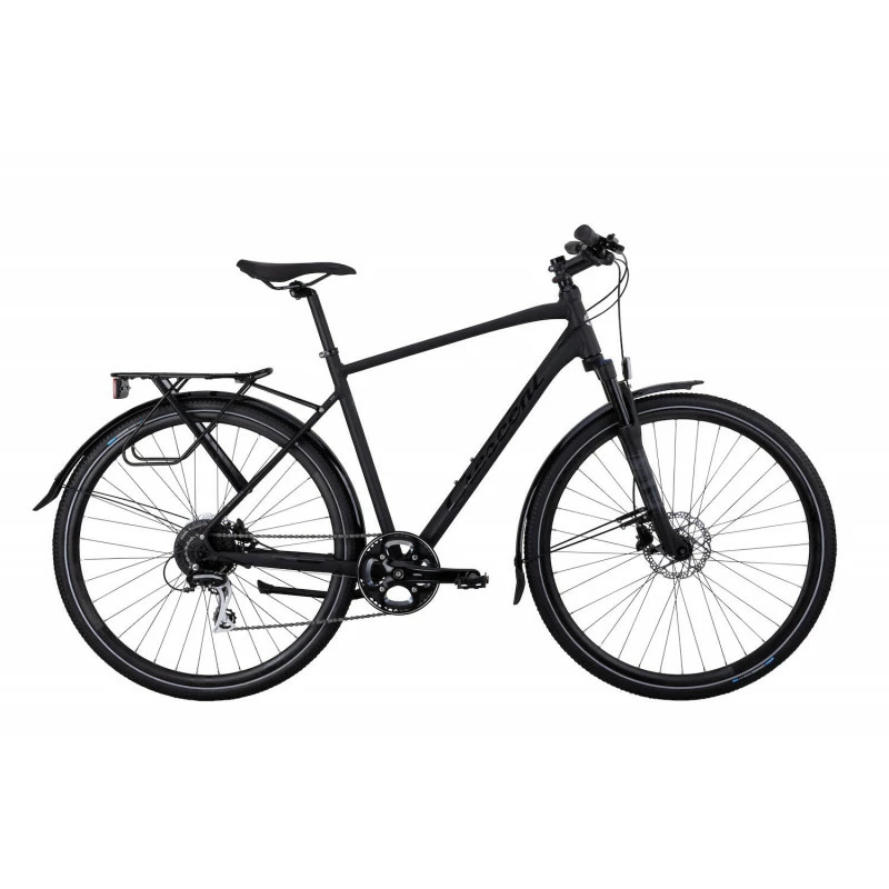 | Starren är ett den idealiska pendlarcykeln. Du får en snabb, funktionell och dessutom säker hybridcykel som kan ta dig dit du vill i många år framöver. Denna hybrid är utrustad med skärmar, stöd och en pakethållare med AVS-snabbfästen, som gör att du kan sätta på väska eller korg med bara ett klick. Den fjädrande framgaffeln i kombination med den lätta, starka aluminiumramens geometri och de grova däcken ger både kontroll och bra känsla på grus. Och vill du köra fort på asfalt är det enkelt att låsa fast gaffeln i stumt läge och låta benen jobba på. De 8 växlarna från Shimano ger dig resurser att klara allt från enklare bergsbestigning till kittlande snabba backar. Farten kontrolleras effektivt med de hydrauliska skivbromsarna. Styre, styrstam och sadelstolpe är tillverkade i lätt och stark aluminium och de är designade för att ge dig en bekväm sittställning som enkelt kan justeras. |